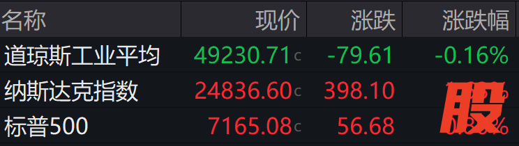 ►►当地时间上周五,美股三大股指分化,截至收盘,道指跌0.16%,纳指涨1.63%,标普500指数涨0.80%。