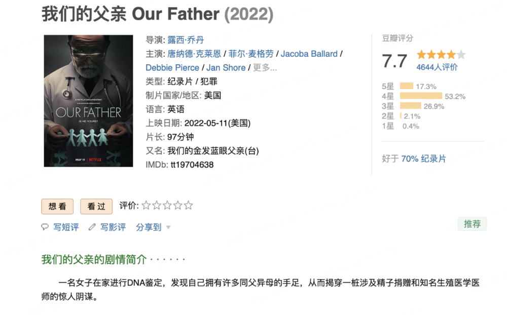 良好的口碑和温和的性格,让查尔斯的“后代们”更加不解:他为什么要这么做?是因为精子短缺吗?又或是因为他的自负,他所谓的“造物主情节”,促使他犯下如此恶劣的医疗欺诈行为。