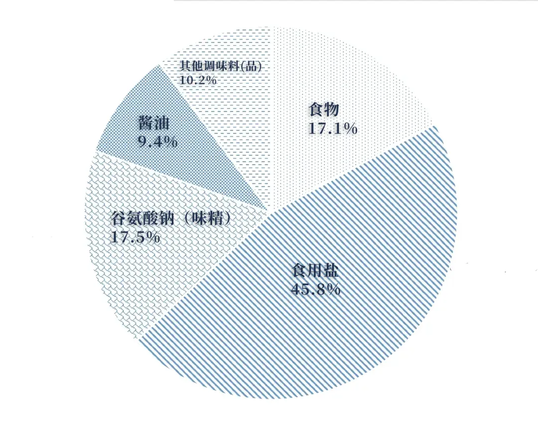 许多人以为“少放点盐”就能减钠,而研究进一步分析发现,所有菜肴中,仅有17%左右的钠来源于食物本身,而有83%的钠来自调味品,比如盐、酱油、味精、酱料等。