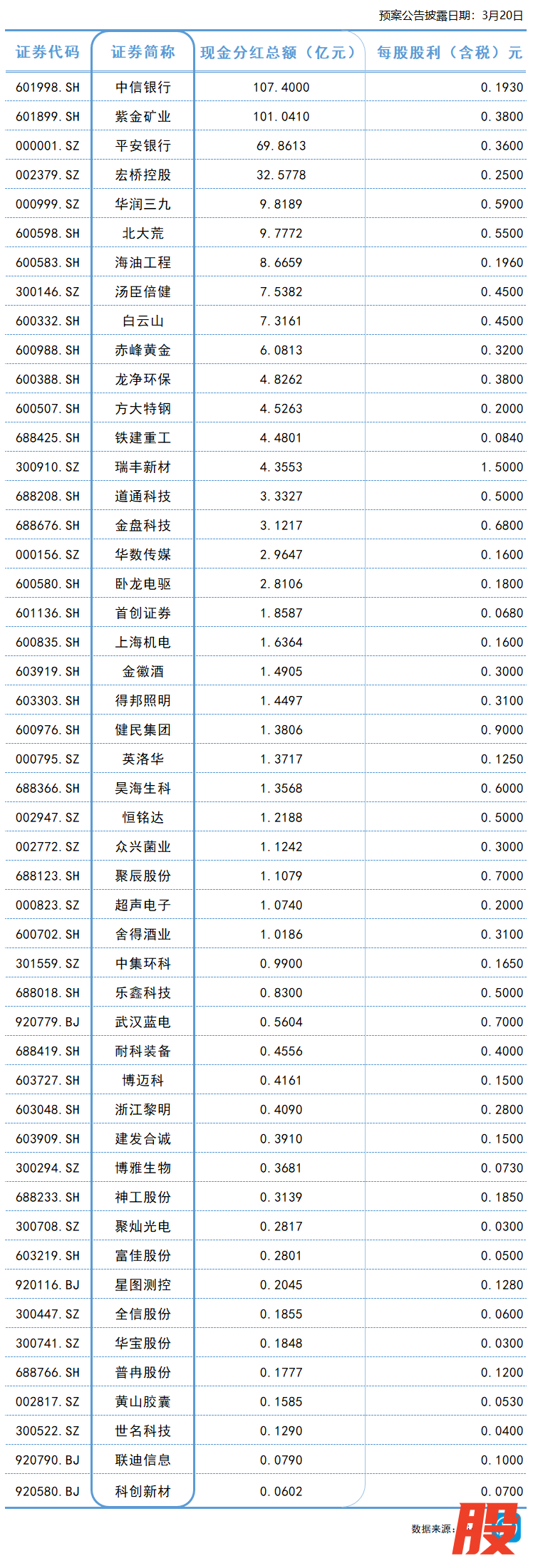 年度分红汇总丨这家公司预计派发现金红利超107亿元年度分红汇总丨这家公司预计派发现金红利超107亿元